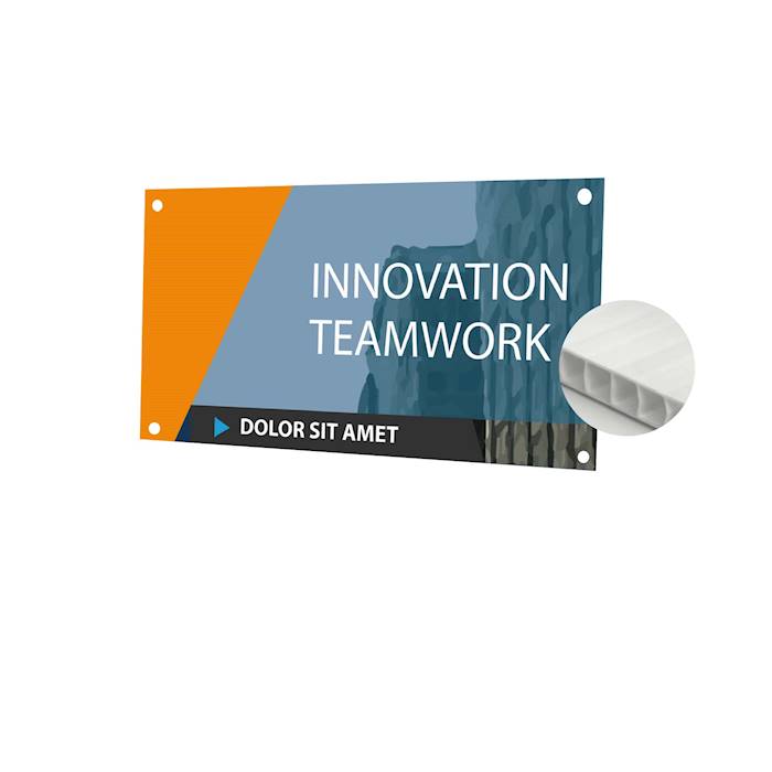 Finitions : Impression recto 1 couleur, 2 couleurs, 3 couleurs ou quadri selon votre choix. Formats classiques 30x80 avec ou sans oeillets. Avantages : Produit ultra économique et léger. Exemples d'applications : Panneaux de chantiers, panneaux d'agences immobilière, panneaux de flèchage. Conseils de "pro" : Pour une meilleure fixation prévoir un oeillet à chaque angle.
