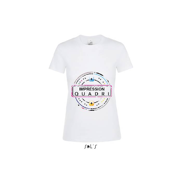 Finitions : Impression numérique quadri sur t-shirt blanc femme Sol's modèle Régent. . Avantages : L'impression numérique haute définition permet un rendu de couleur exceptionnel. Exemples d'utilisation : Vêtements de travail, évènementiels ... Conseils de "pro" : Un lavage des t-shirts à l'envers à 30° permet un maintien de la qualité des couleurs sur du long terme.