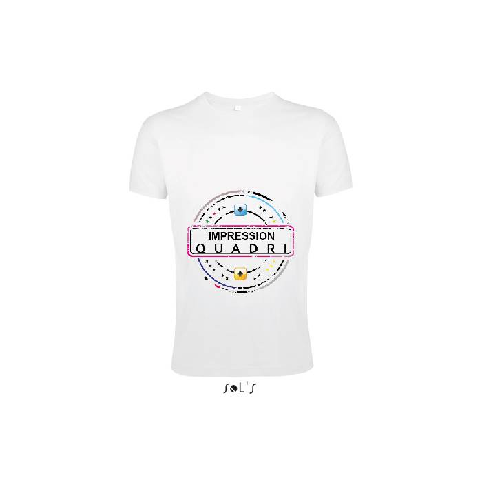 Finitions : Impression numérique quadri sur t-shirt blanc enfant Sol's modèle Régent Fit. Avantages : L'impression numérique haute définition permet un rendu de couleur exceptionnel. Exemples d'utilisation : Vêtements de travail, évènementiels ... Conseils de "pro" : Un lavage des t-shirts à l'envers à 30° permet un maintien de la qualité des couleurs sur du long terme.