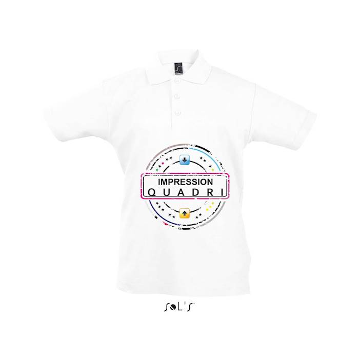 Finitions : Impression numérique quadri sur polo blanc enfant Sol's modèle Summer 2.