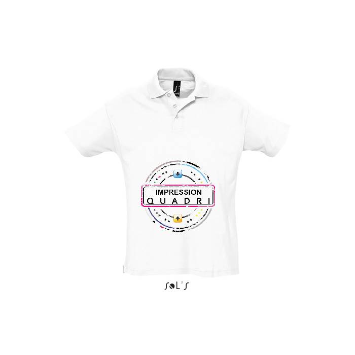 Finitions : Impression numérique quadri sur polo blanc homme Sol's modèle Summer 2. Avantages : L'impression numérique haute définition avec blanc de soutien permet un rendu de couleur exceptionnel quel de soit la couleur du polo. Exemples d'utilisation : Vêtements de travail, évènementiels ... Conseils de "pro" : Un lavage des polos à l'envers à 30° permet un maintien de la qualité des couleurs sur du long terme.