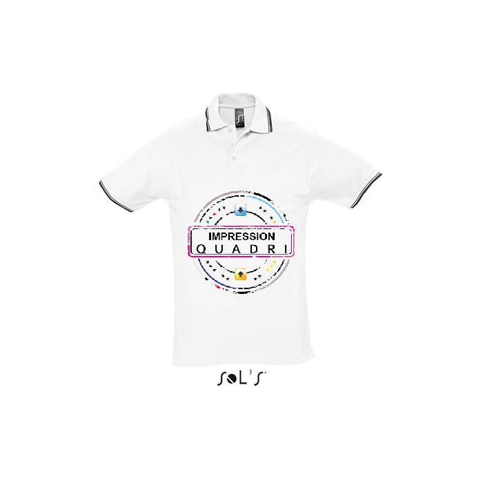 Finitions : Impression numérique quadri sur polo blanc homme Sol's modèle Practice.