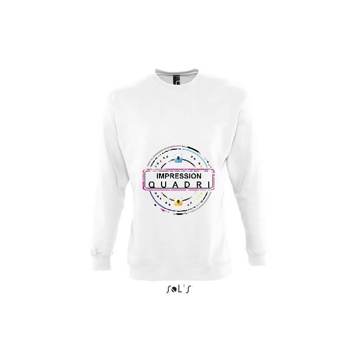 Finitions : Impression numérique quadri sur sweat unisexe blanc Sol's modèle New supreme.