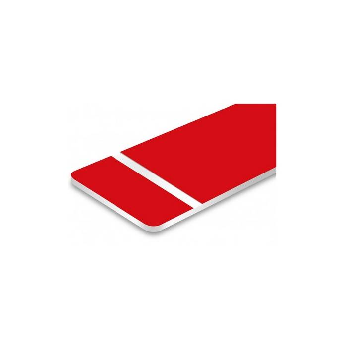 Matière bi-couche + double face 467 au dos : fond rouge texte blanc, résistante aux UV, parfaitement adaptée pour la signalétique intérieure ou extérieure, la réalisation de badges, la signalétique de sécurité...