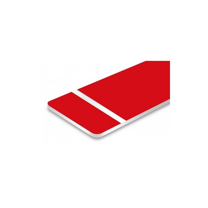 Matière bi-couche + double face 467 au dos : fond rouge texte blanc, résistante aux UV, parfaitement adaptée pour la signalétique intérieure ou extérieure, la réalisation de badges, la signalétique de sécurité...